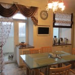 Достаточно только присборить в вертикальные складки сверху австрийскую, как выходит уже совсем другой вариант. Хорошо смотрится с классическим интерьером кухни.