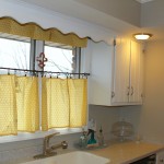 Для создания этих модных штор на кухню, нужно использовать обычную стандартную штору. В нескольких местах собираем в замысловатый пучок и готово. Замечательно и гармонично смотрятся в сочетании с ламбрекенами.