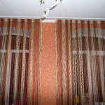 В отличии от прошлого варианта, ленты из которых состоят шторы, прилегают плотного друг к другу, практически не оставляя просвета. С расстояния эти шторы воспринимаются как мозаичный рисунок и удачно укладываются в любом интерьере.