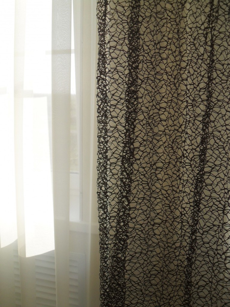 Если Вы сделали отделку комнаты светлой, выбирайте мебель, обитую темными цветами и такие же и шторы! Причем, они могут быть не обязательно однотонными. Оригинально выбирать узоры!
