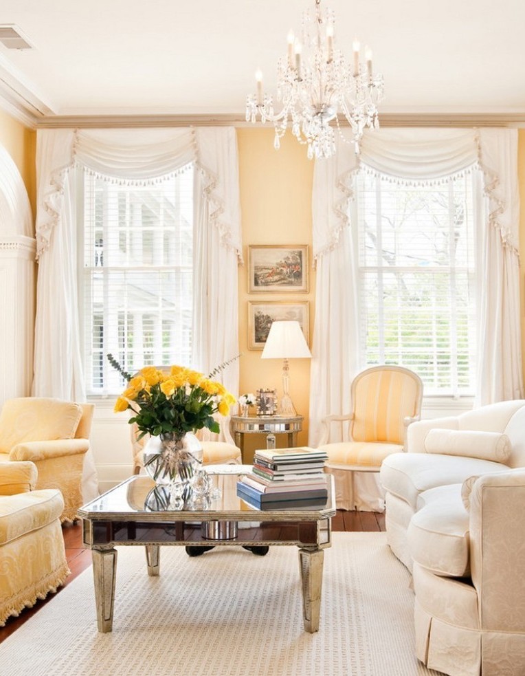 Шторы, которые рассеивают свет, попадающий на них – это прекрасный вариант для гостиной комнаты.