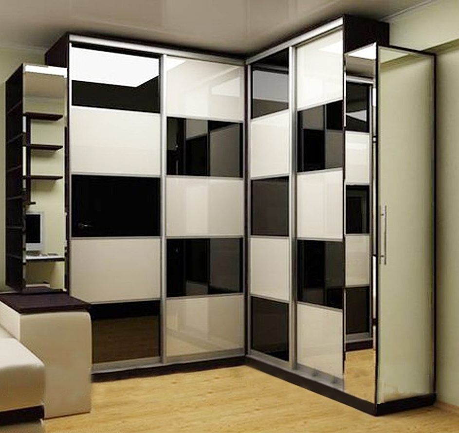 Он может быть не только угловым. А также еще в нескольких вариациях, таких как: трапециевидной или Г-образной. Важно понимать основное отличие между ними. В Г-образном шкафу купе торцы соединяются между собой. Соответственно, монтаж такого изделия достаточно сложный, а значит и цена его высокая. У трапециевидного шкафа неправильные параметры.Используют для обустройства отдельной гардеробной комнаты, поскольку он очень вместителен.