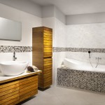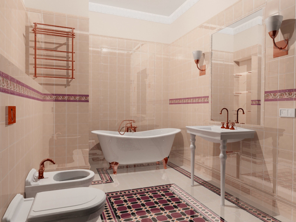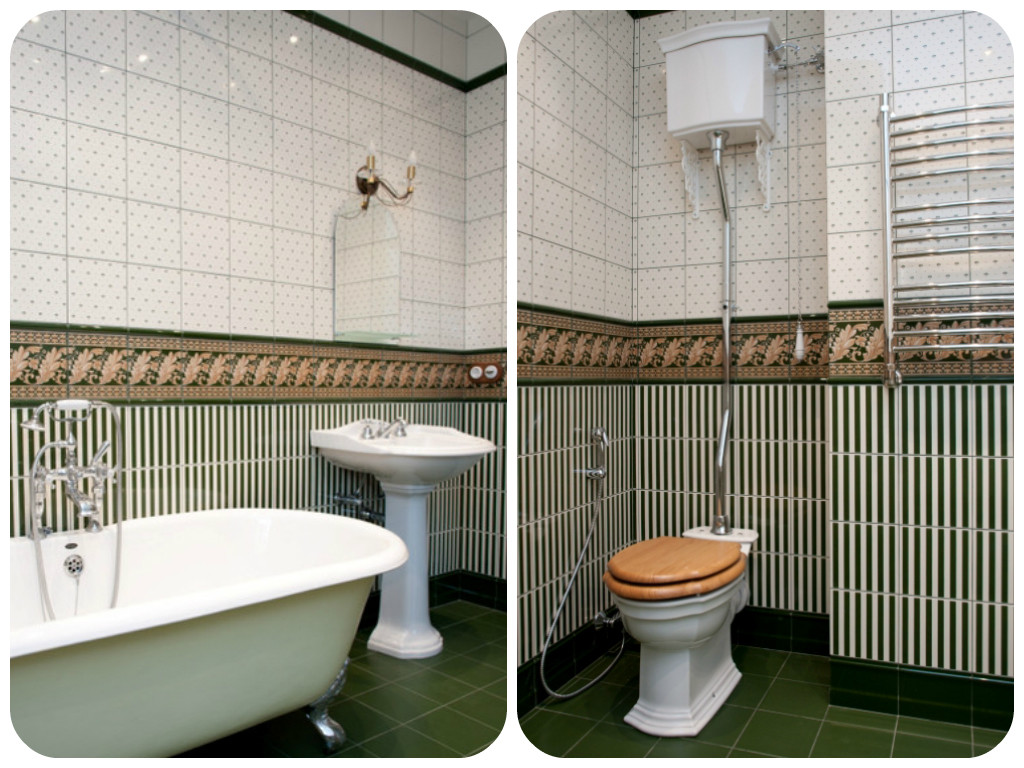 К примеру, если используется прямоугольная плитка, ее длинная сторона должна быть вдоль короткой стены санузла. Благодаря такому приему – расширится узкое помещение. Но если в такой обстановке высокий потолок, стоит оформить бордюр из плит, ориентировочно на пополам (пол-потолок). Причем, нижняя часть ярче (темнее).