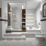 Это оформление допустимо только в небольших санузлах, где физически невозможно поставить много разной мебели. В таком случае, в помещении будет находиться только все, что необходимо. Можно сделать одну или несколько небольших полочек.