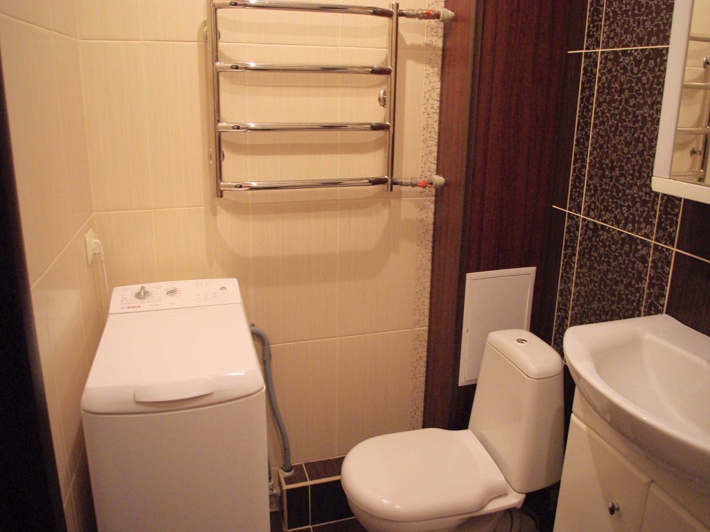 Сантехнику подбирайте небольшую или чтобы ее можно было сделать подвесной.