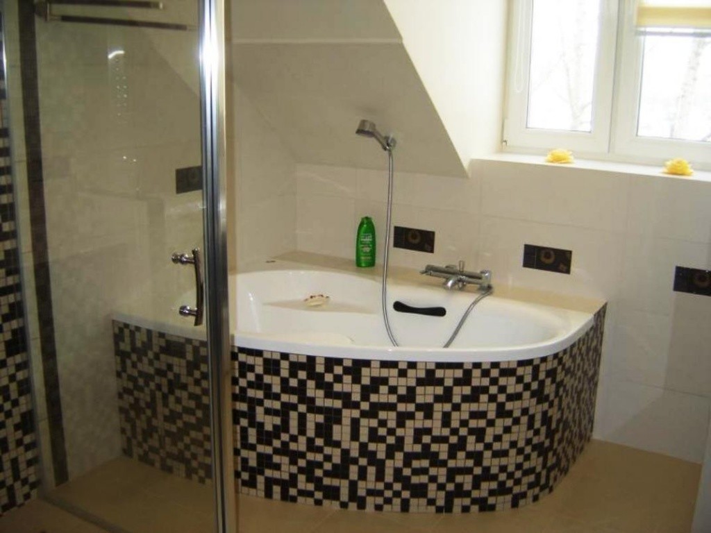 Если Вы смотрели фото дизайна ванной комнаты, то обращали внимание на угловые ванны, которые очень оригинально смотрятся при корректном оформлении интерьера. Такие ванны являются компромиссным решением, когда и вовсе от ванны не хочется отказываться, и стандартная форма уже надоела. Между прочим, вариант угловой ванны – достаточно экономен в плане пространства. Именно поэтому для небольших помещений – это отличный вариант!
