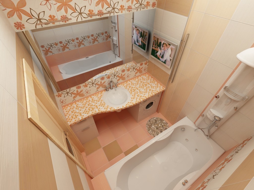 В первую очередь, в квартире-хрущевке необходимо устранить старую ванну. Лучше всего установить здесь углового типа, поскольку она в полной мере экономит пространство. И не стоит волноваться, что старая ванна чугунная и хорошо держит тепло. Современные ванны сделаны из очень качественного акрила и также очень хорошо сохраняют тепло. Благодаря освобождению пространства за счет установки угловой ванны, будет место, чтобы поставить стиральную машинку. Ведь в хрущевской кухне ее точно не вместить. Причем, совсем не обязательно прятать машинку внутрь встроенного шкафа. Ее можно поставить также и под умывальником.