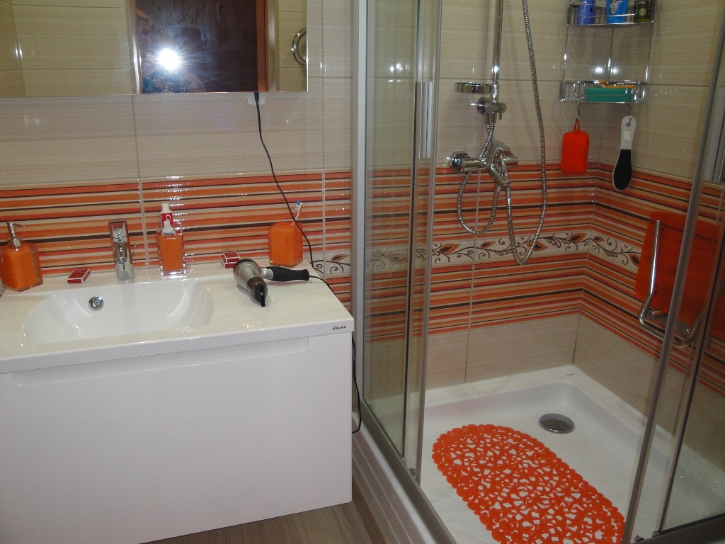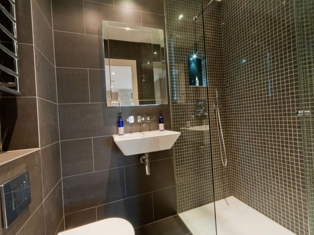 Поскольку глянец визуально выполняет ту же роль, что и зеркало, плитку лучше выбирать именно глянцевую для оформления гигиенической комнаты.