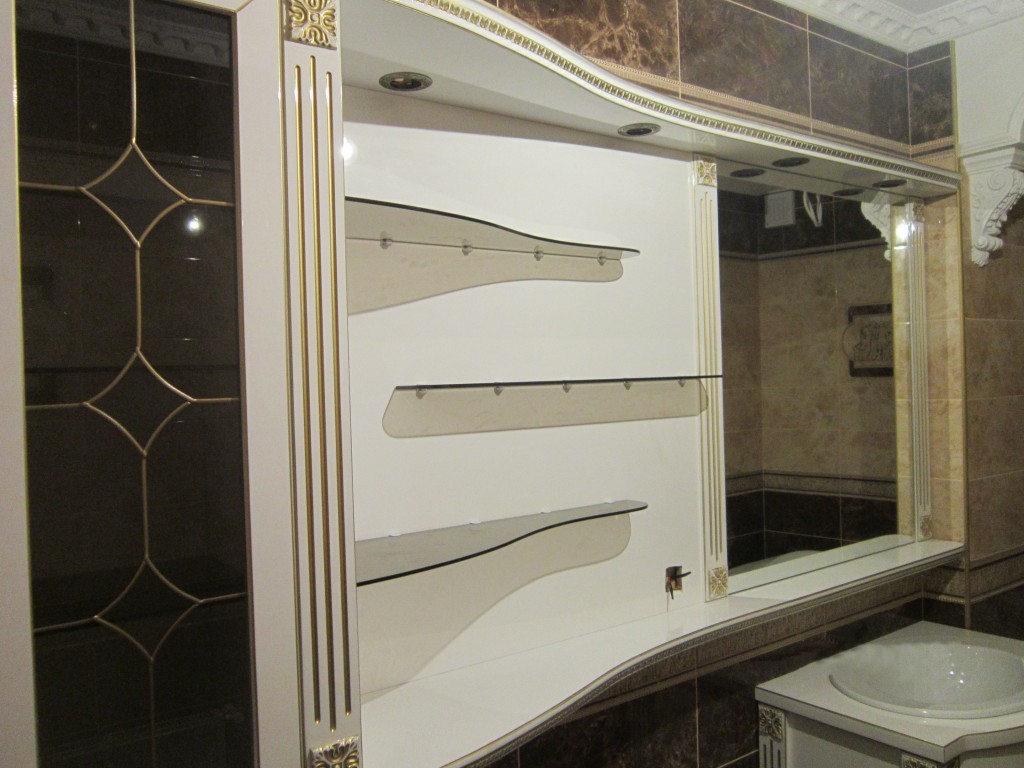 Единственное, что нужно учесть при выборе такой мебели, это регулярную мойку и чистку зеркала, поскольку на нем будет постоянно образовываться налет.