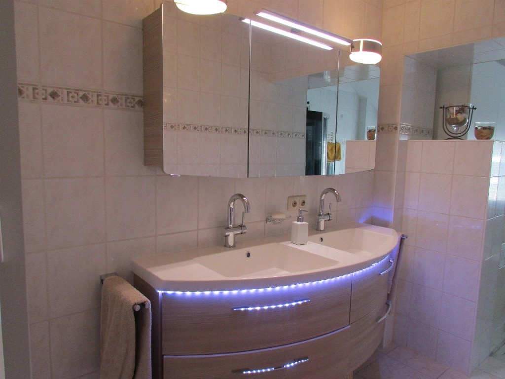 Что касается зеркала в ванной комнате, его можно оформить с подсветкой, особенно верхней. Уж что-то, а за эту установку Вы точно не пожалеете в будущем!