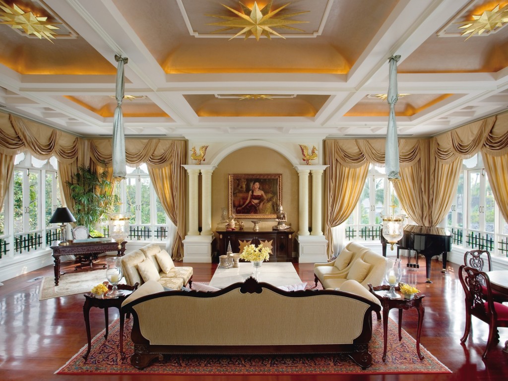 В классике допустимо изготовление штор совершенно из любых видом и типов тканей, с различной фактурой. Также могут использоваться тесьма, ламбрекены или шнуры. Основное, за чем нужно проследить, чтобы не было нарушено цветовое оформление штор и интерьера. Ведь именно в классике – шторы для гостиной являются главным акцентом!
