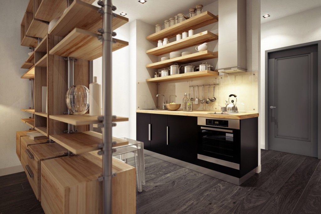 Оригинальным также будет решение обустройства окна и двери, вместо стены. В особенности, в том случае, если из Вашего окна открывается прекрасный вид! Таким образом, Вы сделаете кухню не только более просторной, но и светлой.